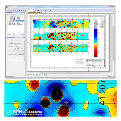 MAGNETOMETRÍA AÉREA CON DRONES Gracias a la frecuencia de muestreo de 200 Hz, el MagDrone R3 se puede conectar directamente al tren de aterrizaje de un dron, incluso a la distancia más cercana a los motores. En comparación con otros, el MagDrone R3 puede distinguir entre el ruido del motor, las frecuencias netas, las interferencias temporales y la señal de tierra. Dependiendo de las capacidades del dron en términos de maniobrabilidad y precisión del GPS, el kit del MagDrone R3 se puede utilizar para estudios de diversos propósitos, cartografías magnéticas relacionadas con la ciencia, estudios de exploración de minerales ocultos, así como para operaciones relacionadas con la seguridad. Estos pueden incluir el escaneo de áreas en busca de bombas y municiones, así como la vigilancia preventiva de áreas determinadas. ESPECIFICACIONES SENSYS MagDrone R3 es un Magnetómetro ultraportátil y liviano especialmente diseñado para montarse fácilmente en cualquier tipo de UAV o dron. El kit consta de un tubo sensor ultraliviano con dos Fluxgates de 3 ejes incorporados con una resolución de 150 pT, un registrador de datos con tarjeta SD interna, baterías recargables y un GPS integrado. Especificaciones • Fuente de Poder 11.1 V; 1950 mAh Li-Ion • Temperatura de Operación: -20 a +50 °C • Peso/ Con batería Li-Ion: 700 g/ 830 g • Consumo eléctrico: 500 mA • Dimensiones tubo sensor: 1070 x 22 mm • Datalogger: Carga 50mA, cableado interno, memoria interna 8GB. • Procesamiento de datos con software MagDrone DataTool (incluido) • Visualización e interpretación da datos con software MAGNETO VIDEOS DESCARGAS DESCARGAR DATASHEET