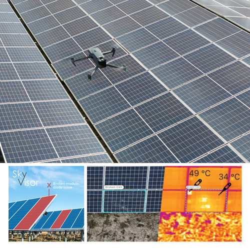 DESCRIPCIÓN SkyVisor Solar es un potente software de inspección todo en uno, compatible con IEC, diseñado para optimizar el rendimiento de parques solares. Esta herramienta integral potencia al equipo de trabajo con capacidades de inspección independientes y rápidas, asegurando un monitoreo proactivo y mantenimiento predictivo para cada instalación solar. Con vuelos de drones totalmente automatizados y detección de defectos impulsada por IA, SkyVisor Solar permite una recolección de datos rápida y de alta calidad para mejorar la eficiencia del mantenimiento y reducir el tiempo de inactividad. Áreas de Aplicación SkyVisor Solar está diseñado para la inspección integral de todo tipo de instalaciones solares, incluyendo paneles fijos y flotantes. El sistema permite la detección temprana de problemas, optimizando el rendimiento de los activos y extendiendo su vida útil. Desde revisiones de mantenimiento rutinario hasta análisis detallado de defectos, SkyVisor Solar proporciona las herramientas esenciales para una gestión fluida y eficiente de activos solares. Suite de Software Todo en Uno SkyVisor proporciona una suite integrada diseñada para la recolección eficiente de datos, resolución de problemas en tiempo real y gestión integral de activos. La App de Dron, App de Campo y Plataforma Web trabajan en perfecta armonía para optimizar las inspecciones y el rendimiento de los activos. App de Dron SkyVisor: Captura datos visuales y térmicos de alta resolución con vuelos de drones 100% autónomos, permitiendo inspecciones rápidas y precisas para todo tipo de activos. Plataforma Web SkyVisor: Gestiona activos, rastrea actividades de mantenimiento, analiza datos de rendimiento y genera fácilmente informes compartibles desde una plataforma centralizada, mientras que la detección de defectos basada en IA mejora la precisión de la inspección convirtiéndote en un experto en el campo. App de Campo SkyVisor: Empodera a tus equipos con acceso instantáneo a datos, hilos de compartición de archivos e imágenes y localización GPS de paneles, asegurando una respuesta rápida y colaboración eficiente para resolver problemas en el sitio. CARACTERÍSTICAS SkyVisor Solar Solución In-House: solución de inspección interna que devuelve el control a tu equipo Inspección rápida de 7 minutos por MW: inspección de activos optimizada y eficiente Operación Totalmente Autónoma: vuelos de drones 100% automatizados que permiten inspecciones independientes por una sola persona, maximizando la eficiencia operativa Datos de Alta Resolución: captura de 100 imágenes de alta calidad por MW, proporcionando datos visuales precisos Cumplimiento con IEC TS 62446-3: cumple con los estándares de inspección, adaptable a diversos tipos y especificaciones de instalaciones solares Impulsado por IA: herramientas avanzadas de detección de defectos basadas en Inteligencia Artificial. Un asistente digital experto en termografía, que permitirá detectar defectos de manera más rápida y eficiente Informes Optimizados: Genera sin esfuerzo informes digitales detallados y compartibles para una comunicación fluida con las partes interesadas VIDEOS DESCARGAS Descargar Datasheet