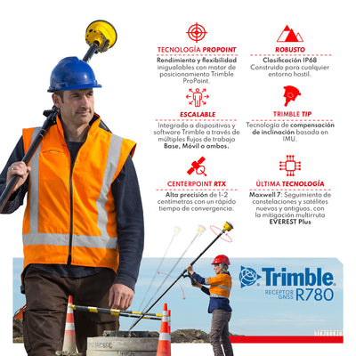 DESCRIPCIÓN El mejor complemento para sensores geodésicos y topográficos El receptor GNSS R780 de Trimble es una robusta solución GNSS para posicionamiento satelital de alta precisión. Pensado para los escenarios más exigentes, R780 posee un diseño compacto y ultra robusto (Rugged IP68), sumado a un potente procesador Trimble Maxwell™ 7 GNSS ASIC que permite el rastreo de múltiples señales GNSS bajo el control de un avanzado sistema para filtrado de interferencias y efectos multitrayectoria proporcionado por la tecnología EVEREST™ Plus. La incorporación de la constelación Galileo y Triple Frecuencia (L5) se suman a la configuración base de R780 (GPS y GLONASS) aumentando considerablemente la disponibilidad satelital. CARACTERÍSTICAS TRIMBLE R780 Galileo y triple frecuencia La incorporación de la constelación Galileo y Triple Frecuencia (L5) se suman a la configuración base de R780 (GPS y GLONASS) aumentando considerablemente la disponibilidad satelital, permitiendo así, inicializaciones, más rápidas y un robusto posicionamiento satelital. Para este nuevo estándar R780 incorpora 336 canales que permiten un rastreo altamente eficiente. Trimble ProPoint™ La potente tecnología de procesamiento avanzado Trimble ProPoint™ está integrada en R780 proporcionado precisas y confiables soluciones multiconstelación y multifrecuencia en tiempo real (RTK), en entornos tradicionalmente complejos, aumentando sustancialmente la productividad de los trabajos de terreno. Libertad para trabajar a tu manera R780 es un receptor GNSS flexible y escalable. ¡Crece a tu ritmo!, incorpora nuevas constelaciones, configuraciones (Base o Móvil) o potencia tu receptor mediante tecnologías como Trimble TIP™, Trimble CenterPoint RTX y Trimble xFill®. Trimble Access™ R780 es integrable con Trimble Access. Elige el colector de datos que más te acomode y lleva a R780 a un alto nivel de productividad: realiza cálculos topográficos o geodésicos en terreno en pocos pasos, visualiza tus trabajos mediante una avanzada interfaz gráfica,  vincula tus trabajos de forma automática al marco geodésico SIRGAS Chile 2021.0. Métodos de levantamiento A los ya conocidos métodos de levantamiento punto topo, punto rápido y punto de control observado, se suma el Punto de inclinación múltiple, basado en la potente burbuja electrónica incorporada en el sistema GNSS R780, determina posiciones GNSS precisas, mediante mediciones inclinadas múltiples sin necesidad de contar un magnetómetro Trimble Business Center™ Un avanzado rastreo de señales GNSS como el que proporciona R780 puede ser incorporado de forma automática a Trimble Business center, un potente software de procesamiento GNSS. Procesa y ajusta redes GNSS, analiza estadísticamente los resultados, genera productos topográficos con datos provenientes de R780 en pocos pasos. ESPECIFICACIONES ⨭ Trimble TIP: Tecnología de compensación de inclinación basada en IMU. ⨭ Trimble ProPoint: tecnología de procesamiento avanzado, que proporciona soluciones multiconstelación y multifrecuencia en tiempo real (RTK), en entornos tradicionalmente complejos ⨭ Flexible y escalable: Incorpora nuevas constelaciones, configuraciones (Base o Móvil) o potencia tu receptor mediante tecnologías como Trimble TIP™, Trimble CenterPoint RTX y Trimble xFill®. ⨭ Fácil integración con sensores geodésicos y topográficos, como estaciones totales de la serie S de Trimble, Drones, escáner LiDAR móvil y terrestre, sistemas de batimetría, entre otros. ⨭ Posicionamiento estático de alta precisión: Horizontal 3 mm + 0.1 ppm / Vertical 3.5 mm + 0.4 ppm ⨭ Posicionamiento PPK: Horizontal 8 mm + 1 ppm / Vertical 15 mm + 1 ppm ⨭ Posicionamiento RTK: Horizontal 8 mm + 0.5 ppm / Vertical 15 mm + 0.5 ppm ⨭ Posicionamiento RTX: Horizontal 2 cm / Vertical 5 cm Rastreo de señales: ⨭ GPS L1C, L1C/A, L2E(L2P),L2C,L5 ⨭ GLONASS L1C/A, L1P, L2C/2,L2P, L3 ⨭ GALILEO E1, E5A, E5B y E5AltBOC, E6 ⨭ BEIDOU B1, B2,B3, B1C, B2A Comunicación y conectividad: ⨭ Formatos CMR+, CMRX, RTCM 2.1, RTCM 2.3, RTCM 3.0, RTCM 3.1, RTCM 3.2, NMEA (24 SALIDAS) GSOF, RT17, RT27 ⨭ Comunicación Wifi, Lemo (serial 1), Bluetooth, UHF ⨭ Memoria interna 9 GB ⨭ Batería Batería de ión litio recargable / encendido automático con suministro externo ⨭ Duración batería Estático: 5.5 horas promedio / RTK 4 horas promedio ⨭ Horizontal 8 mm + 1 ppm VIDEOS DESCARGAS DESCARGAR DATASHEET